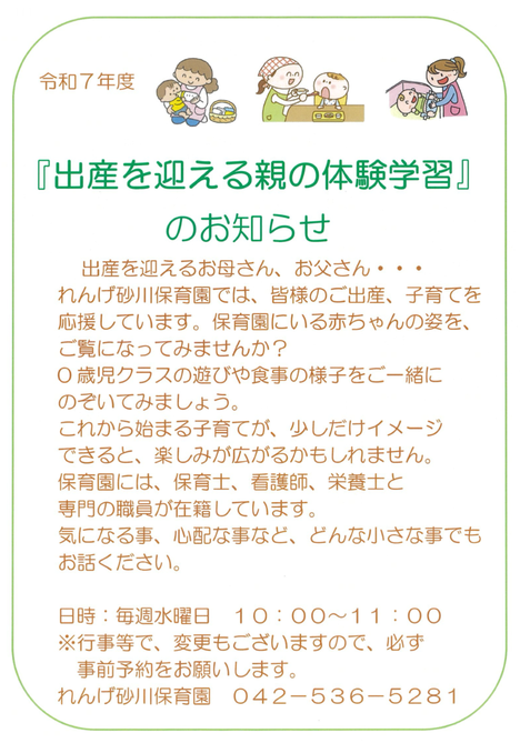 🍀令和7年度 『出産を迎える親の体験学習』のお知らせ🍀